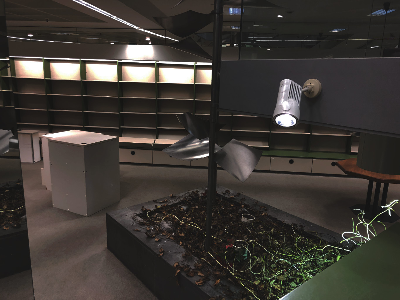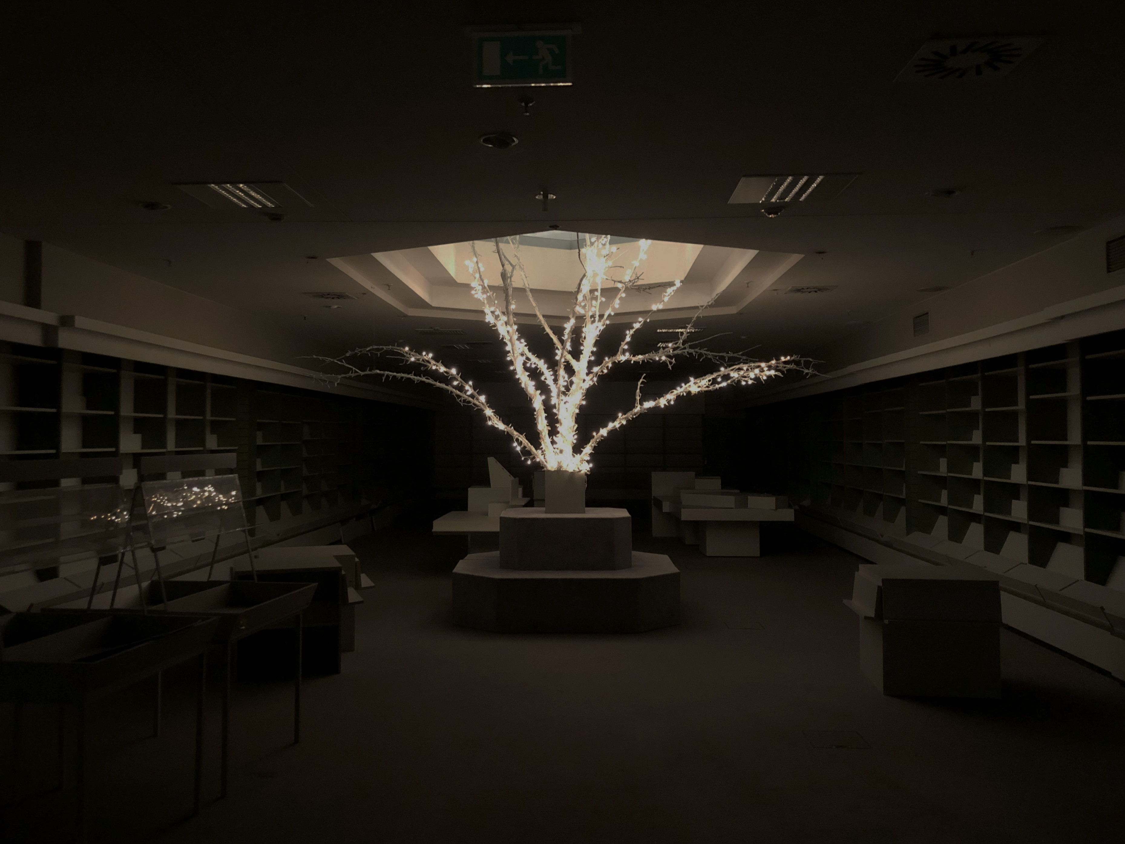 Das gruseligste der Nachtwanderung: Die undefinierbaren Pflanzen am Fuße des Treppenaufgangs leben noch. Das ganze Haus macht den Eindruck, als könne es jederzeit wieder in Betrieb gehen - die Rolltreppen laufen noch, die Klospülungen gehen, die Elektronik steht. Seit drei Jahren hält ein Hausmeister alles am Laufen. Nur die Pflanzen gießt er nicht - angeblich.