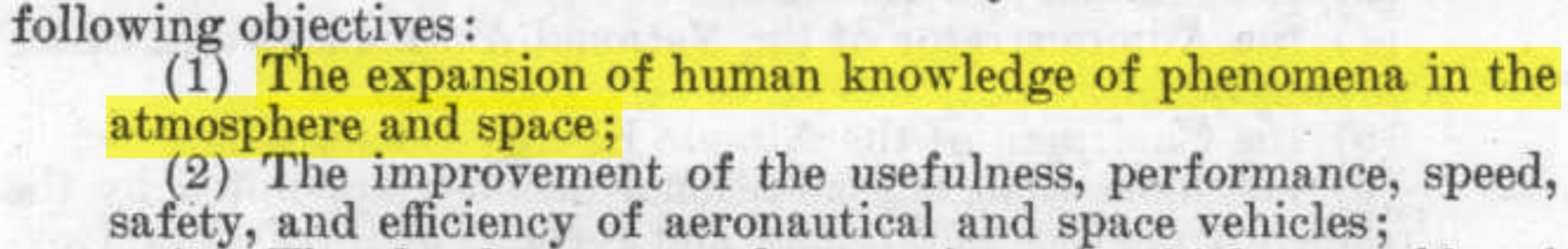 Der “National Aeronautics and Space Act” von Juli 1958 ist das Gründungsdokument der NASA - der coolsten Behörde der Welt. Und das hier waren ihre Hausaufgaben: